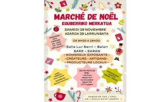 Marché de Noël organisé par l'APEL de l'école Saint Joseph, nombreux exposants, créateurs, artisans, producteurs locaux. Animation fête foraine : 10h - 12h / 15h - 16h30 Tombola, 3 lots à gagner : 12h Jeu de piste de noël : + de 8 ans équipe de 5 sur inscription, départ 15h Restauration buvette, paninis, crèpes